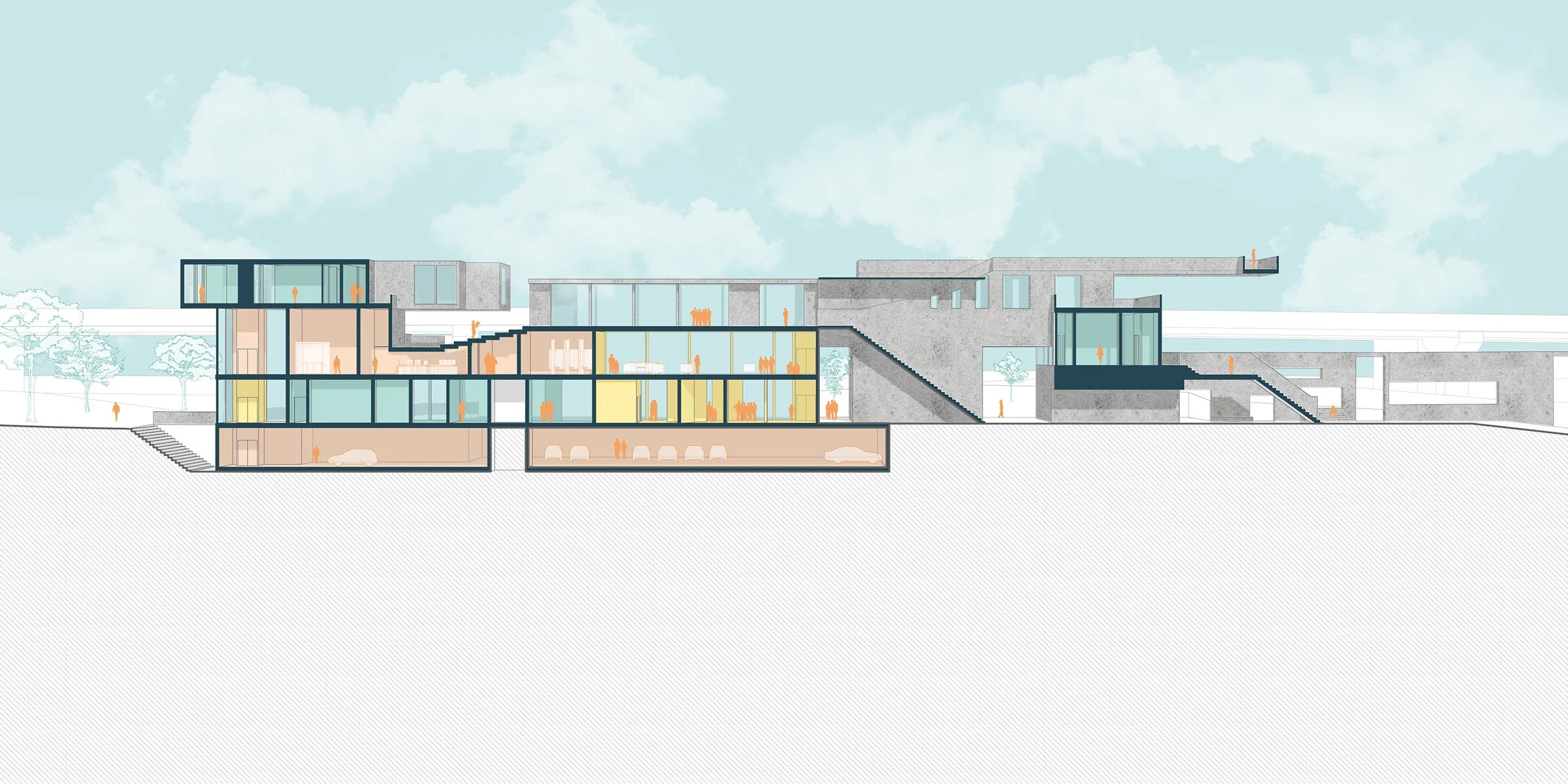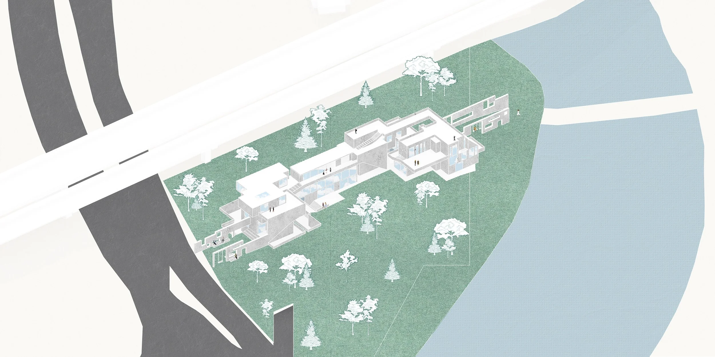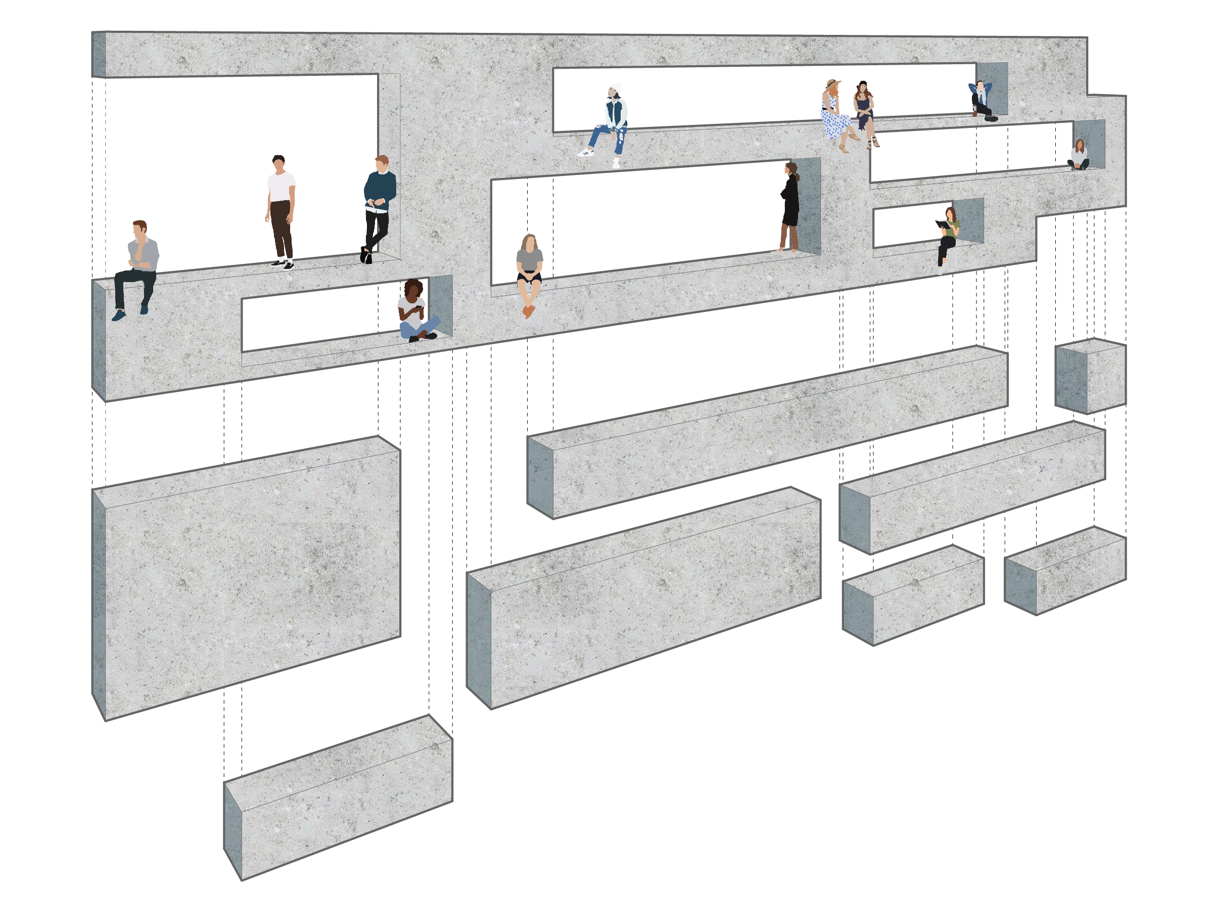 The building form begins with a boundary line from the historic redlining map that was once used as a tool to oppress and disenfranchise African Americans. We chose to make this line our own and reinterpret it in favor of the community. We selected a line from one of the two closest zones to our site, and offset it. We extruded this to create a tangible boundary or wall. We then put together a subtractive matrix in order to deconstruct it and reform the boundary as an opportunity for occupation and use. These subtractive methods were divided into three categories: occupy, pass through, and pause. These three categories hold political and cultural implications; harkening to issues surrounding occupation and territory, passing through or moving across borders, and the ability to pause or loiter unimpeded.