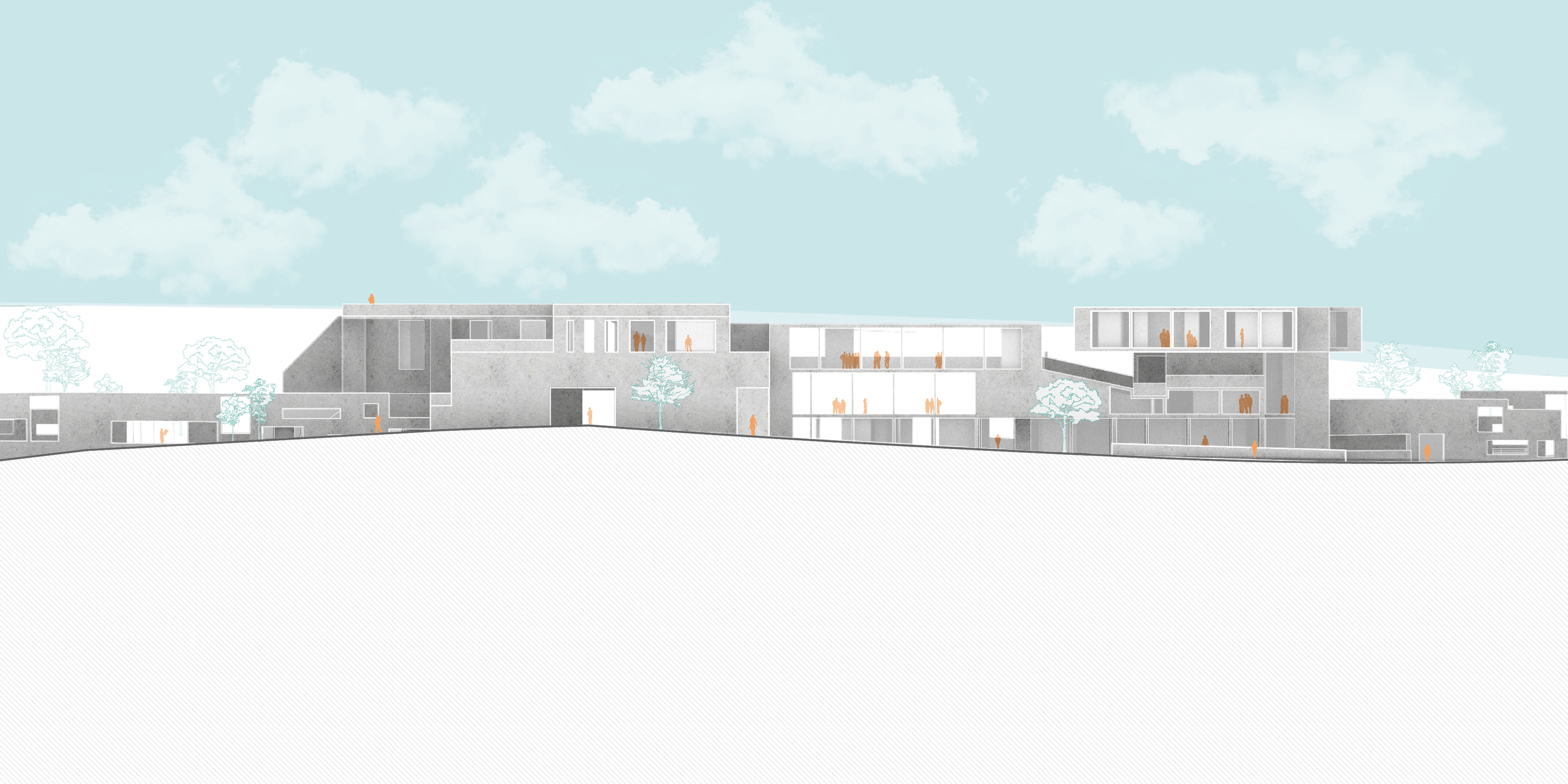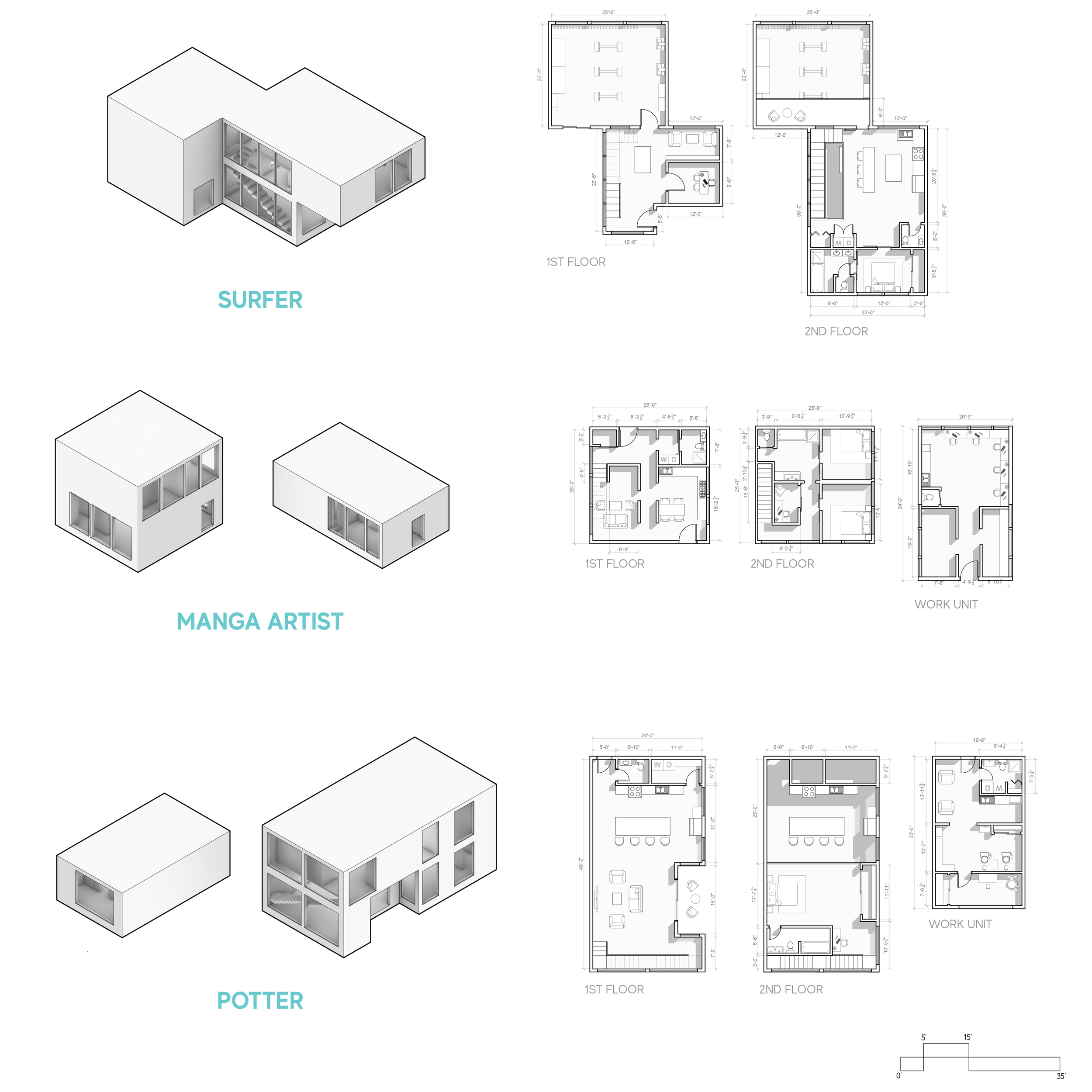 Hózhó is a Navajo for working towards a sense of balance within oneself, our planet, and in life. It is a word that is core to the structure of their community, and it communicates our focus on the restoration of balance between the neighborhood and its environment. This project focused on nine live/work units for three makers within the RiNo district of Denver. When our team started this project we observed that there was a disconnect from people and place in the urban environment. This became evident as we were exploring the history of redlining in the neighborhood that affected marginalized groups through systematic racism. We sought to deconstruct the idea of redlines as a means of oppression and walls as boundary, and reform them as inclusive spaces.